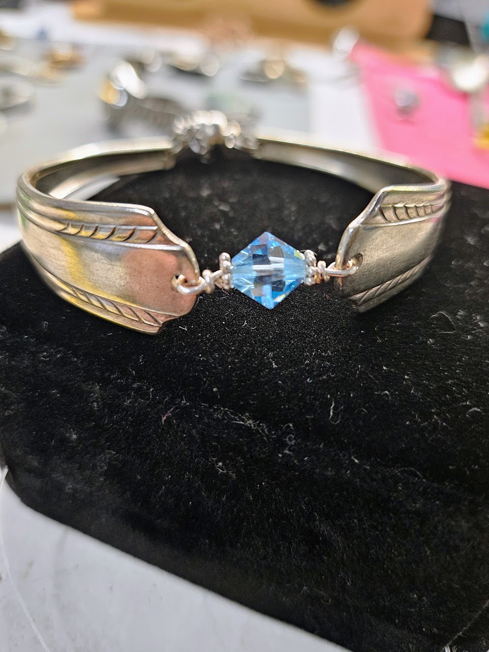 Attractive repurposed Oneida Carlton Mansfield silver-plated silverware with an Aquamarine stone